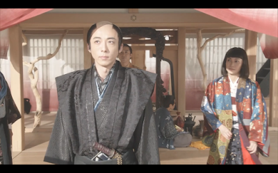 於是方久和氣賀的商人代表中村屋去了給太守大人送香爐,兼準備提出讓井伊當氣賀的城主之際,太守大人突然收到了武田義信自殺的消息,應該是義信他爸迫他的吧,武田義信就是太守大人他妹的丈夫,親家老爺迫死兒子,即是說武田親家正式要和今川決裂了。太守大人氣得把室內所有東西都砸了,嚇壞方久和中村屋了,於是他們立刻退下,沒有說出轉城主的請求